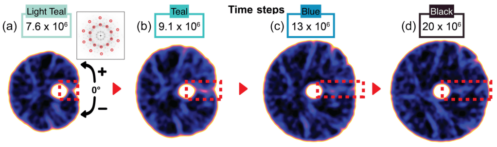 To understand the atom-level mechanics behind what they were seeing, the team ran molecular dynamics simulations. This is like creating a virtual universe in a computer, where they could build a model quasicrystal atom by atom. They then programmed a virtual pore in its path and let the simulation run to watch exactly how the individual atoms rearranged themselves as the crystal grew and enveloped the obstacle.