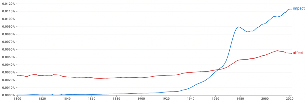A journalist who relies too heavily on one word also risks blunting the edge. Consider, for example, the widespread use of the word 'impact'. It was once a straightforward noun referring to a collision or perhaps a decisive effect. Now it appears in nearly every context — "social impact", "economic impact", "climate impact", "emotional impact" — and has as a result been deprived of the sense of force it once had.